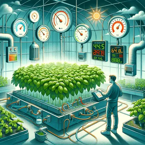 Basil loves warm air and a bit of sunshine, but not too much! To make basil happy in a greenhouse, you need to keep it warm but not hot. The air inside should be a little wet, but not too wet. You can use a thermometer to check the warmth and a tool that tells you how wet the air is, called a hygrometer.